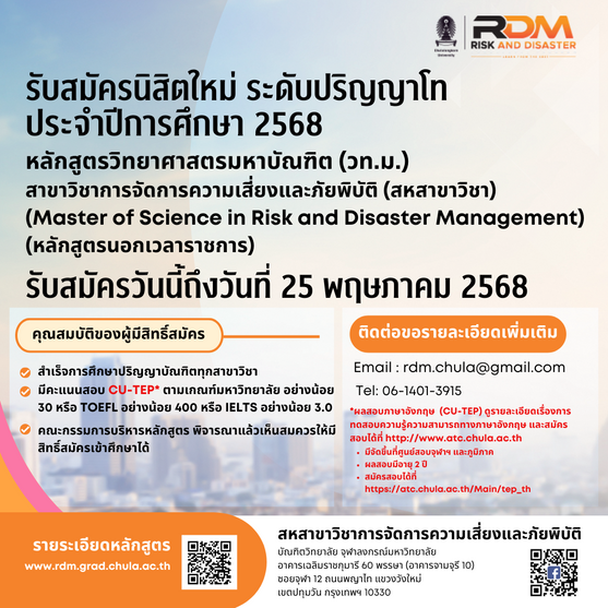 The program focuses on producing graduates who have great knowledge and expertise in risk and disaster management with knowledge integration and effective and systematic thinking processes